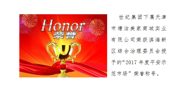 美(měi)家(jiā)商城(chéng)榮獲“2≈'017年(nián)度平安示範市(shì)場(ch&©ǎng)”榮譽稱号